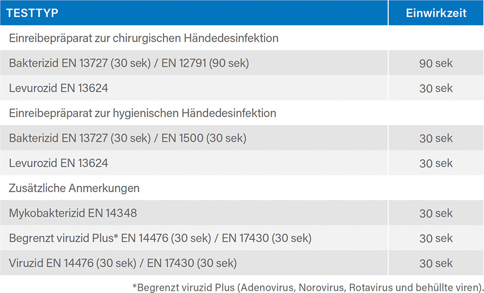 Die Hände gründlich einreiben und sicherstellen, dass alle Bereiche während der gesamten Kontaktzeit feucht sind.